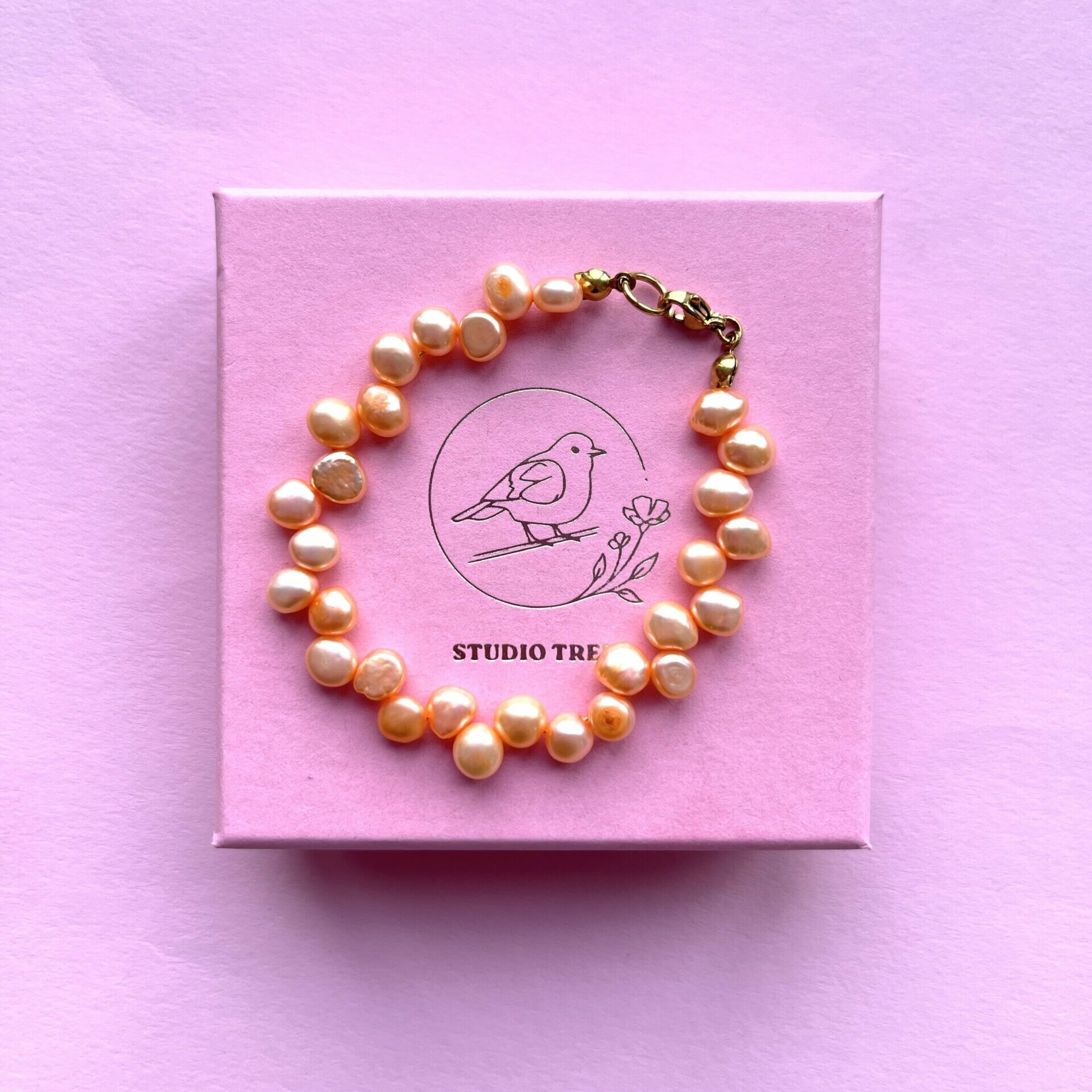 Bransoletka z pereł słodkowodnych w kolorze brzoskwiniowym