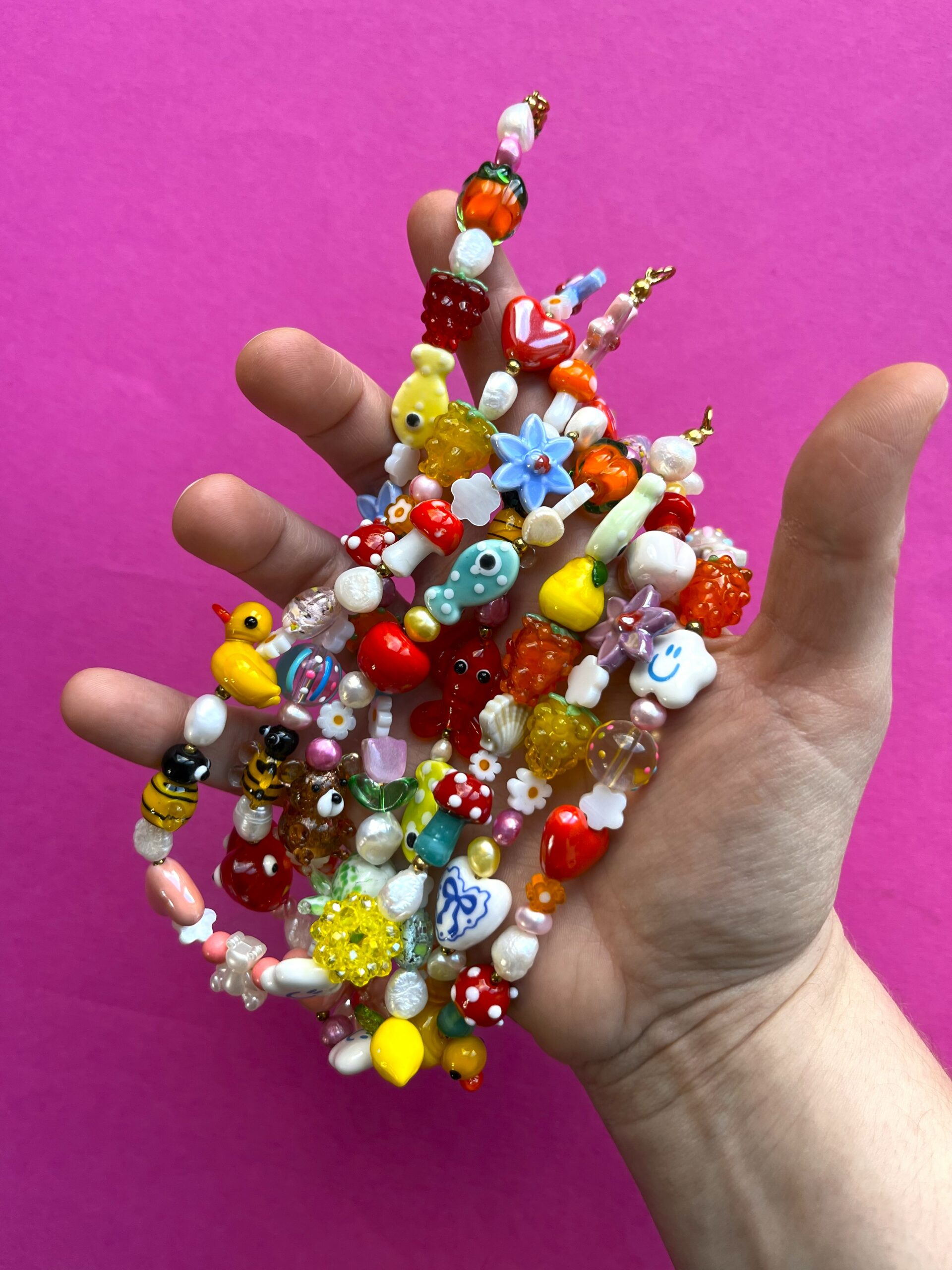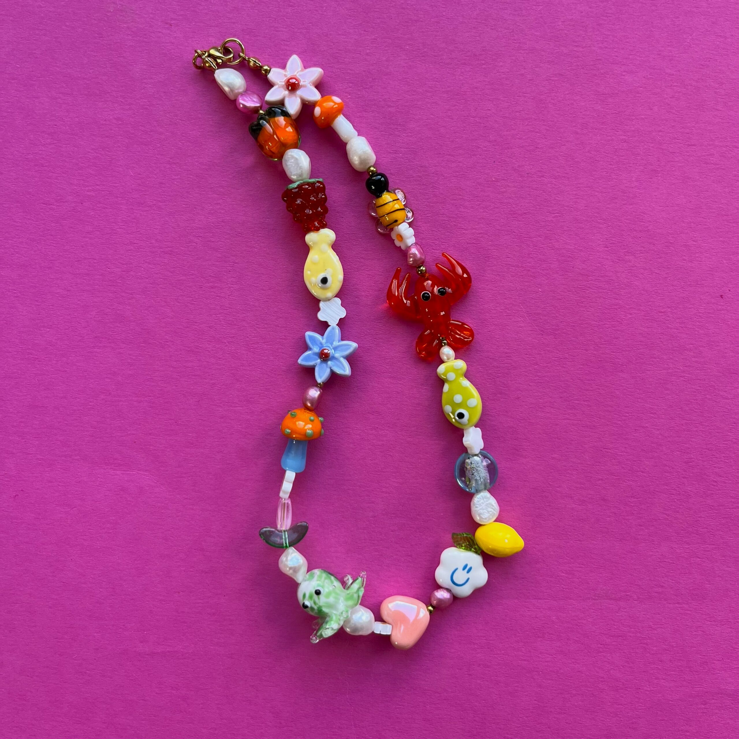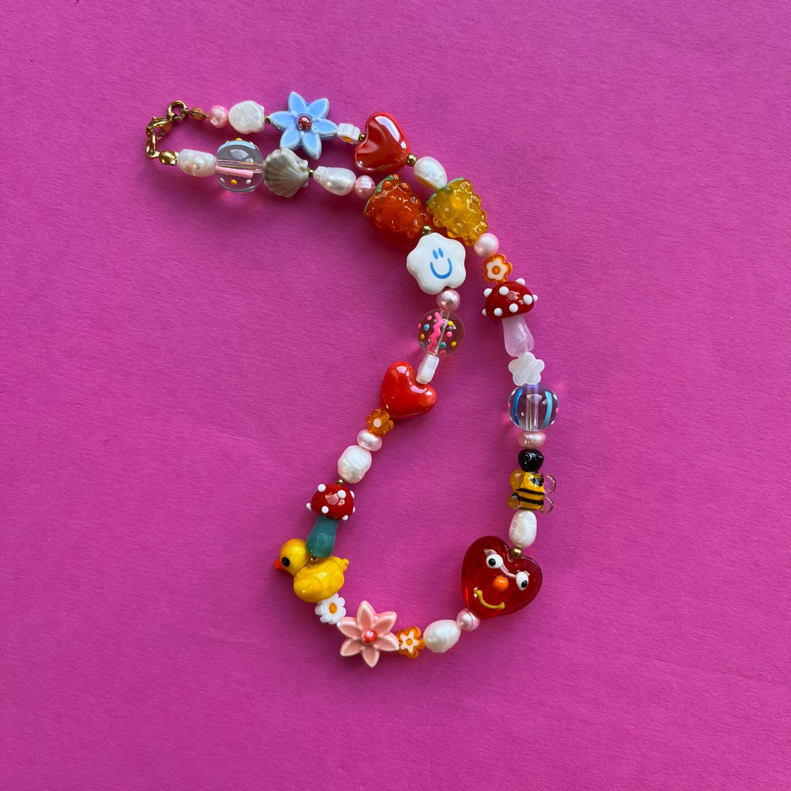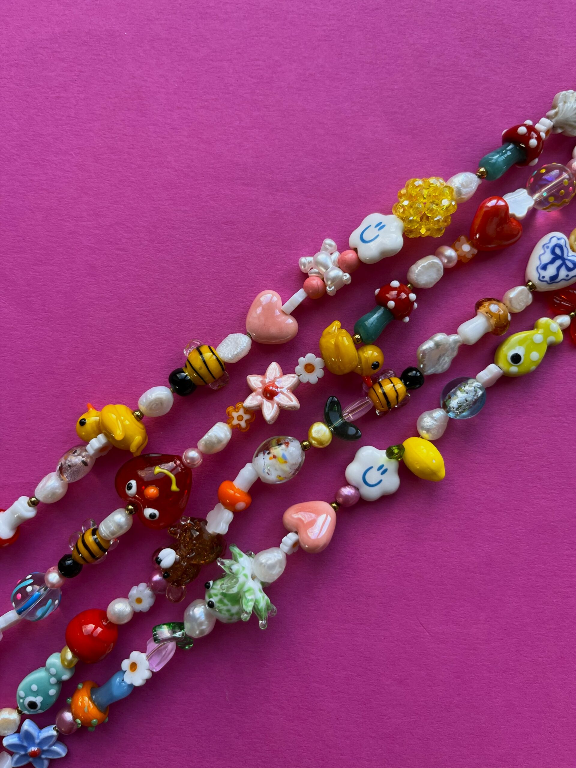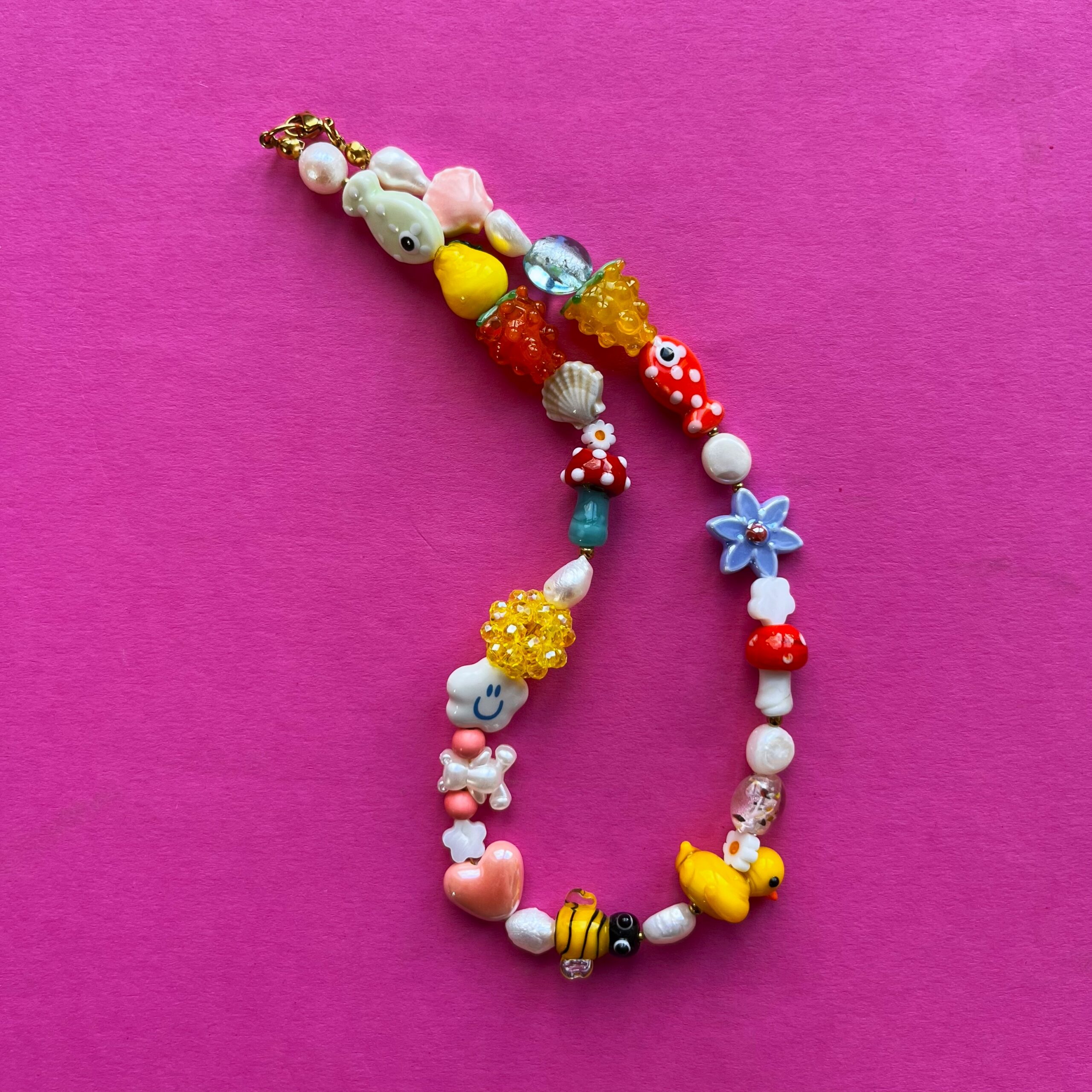 Skład: szkło, perła słodkowodna, ceramika, howlit, hematyt, agat