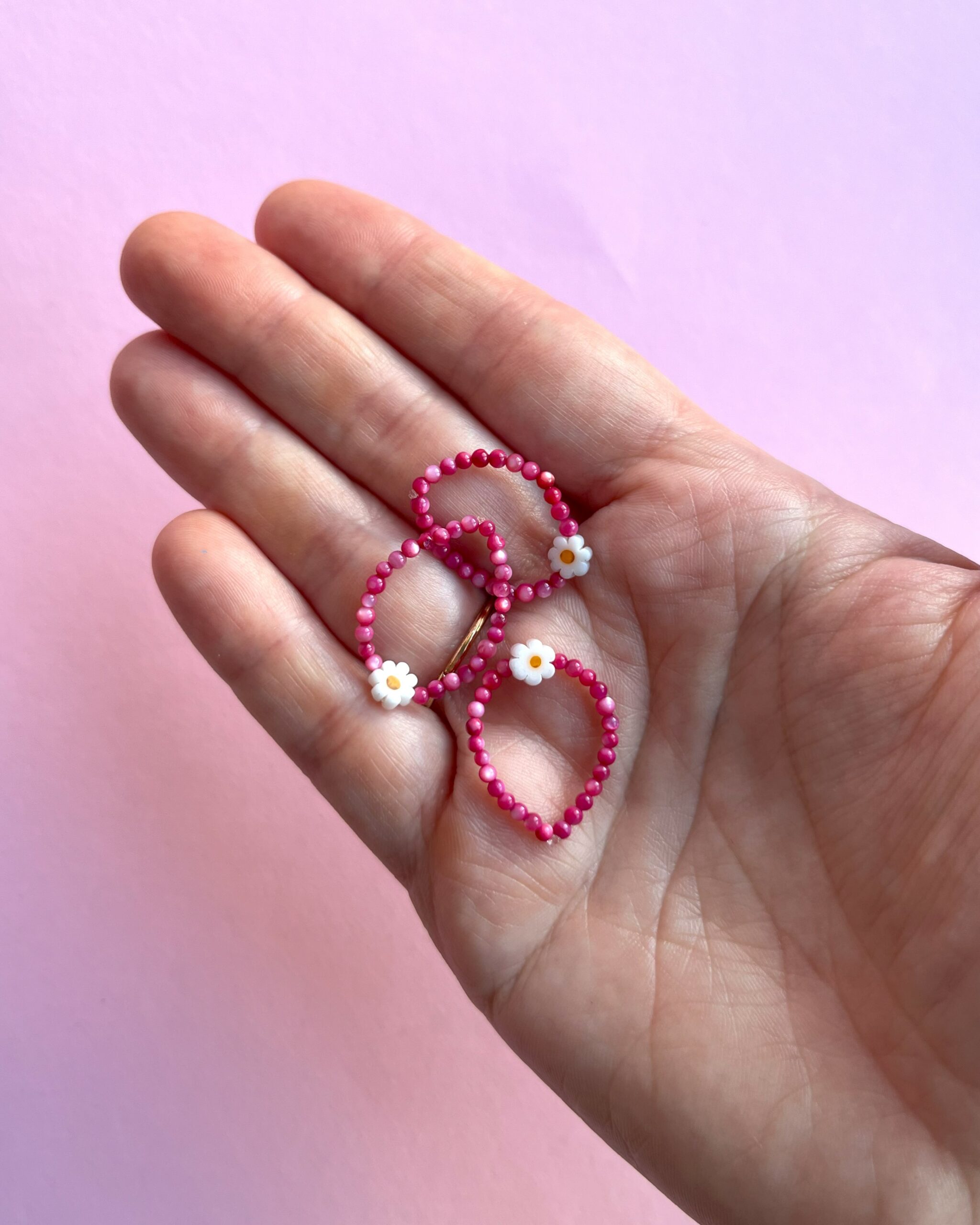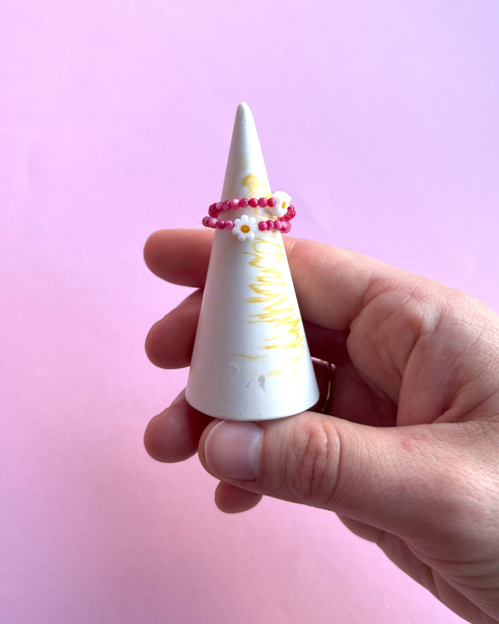Jeśli potrzebujesz innej wielkości pierścionka, napisz do mnie wiadomość. Pierścionki są na gumce elastycznej, która fantastycznie dopasowuje się do palca, więc traktuj, proszę rozmiary bardzo orientacyjnie. Ja posiadam rozmiar L, a pierścionki w rozmiarze S też są dla mnie ok 😉