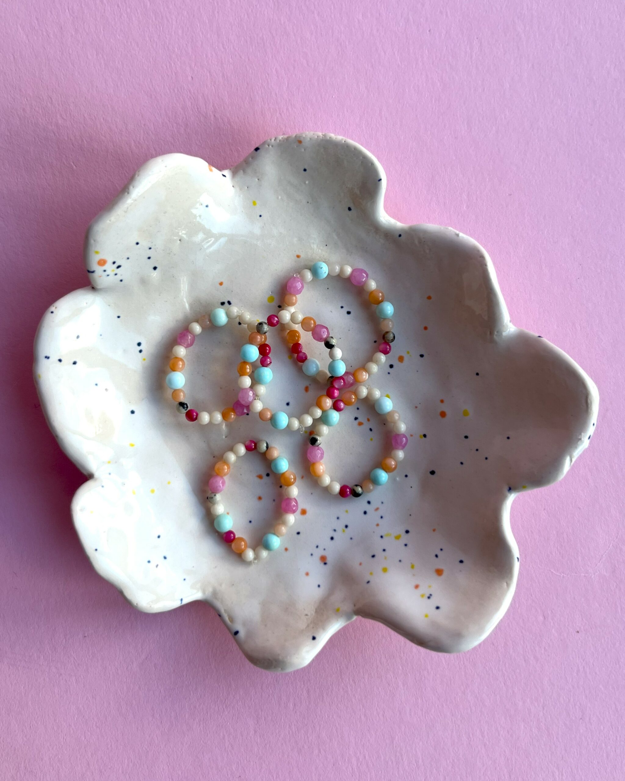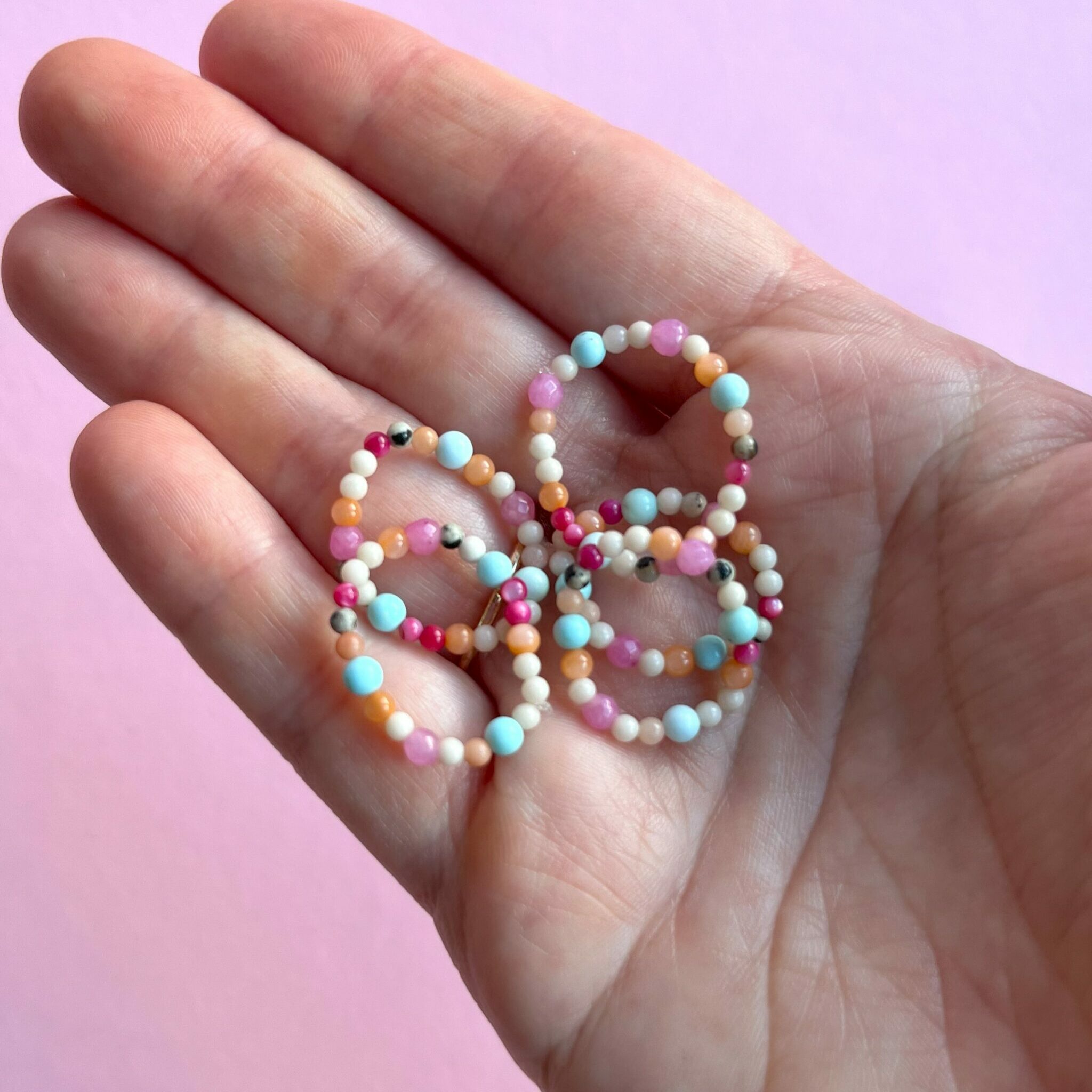 Pierścionek na gumce elastycznej pełen pięknych, malutkich pereł. Niezwykle wygodny, dopełni każdą stylizację.