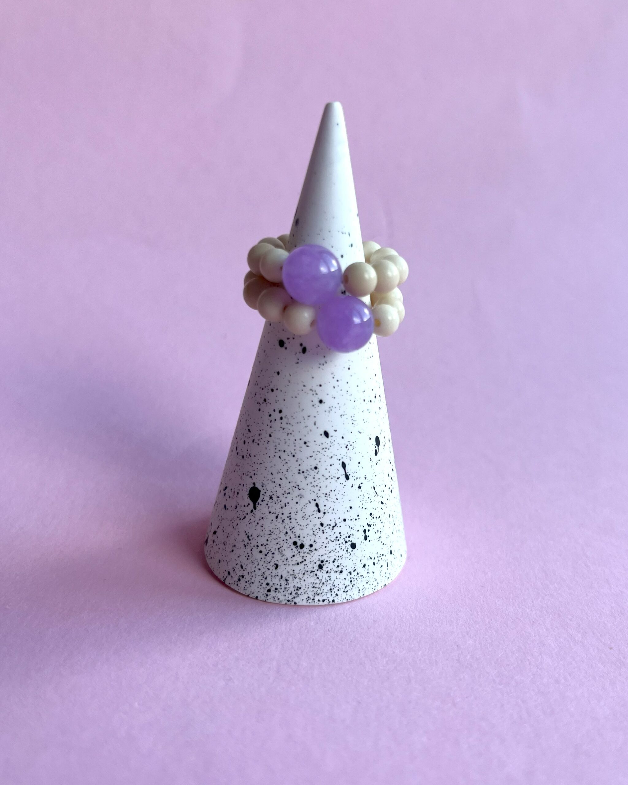 Pierścionek na gumce elastycznej pełen pięknych, malutkich pereł. Niezwykle wygodny, dopełni każdą stylizację.